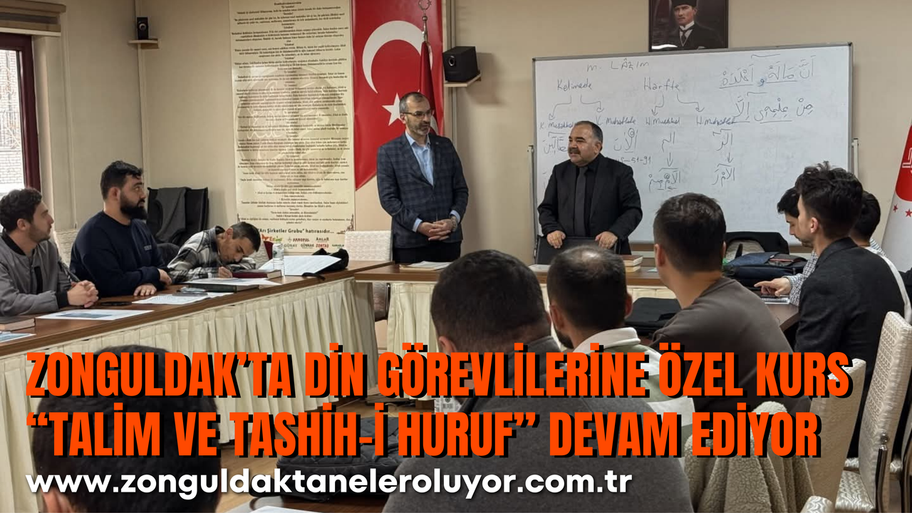 Zonguldak İl Müftülüğü tarafından, Kur’an kursları ve camilerde görev yapan personelin mesleki yeterliliklerini artırmak amacıyla düzenlenen “Talim ve Tashih-i Huruf Kursu” tüm hızıyla sürüyor.